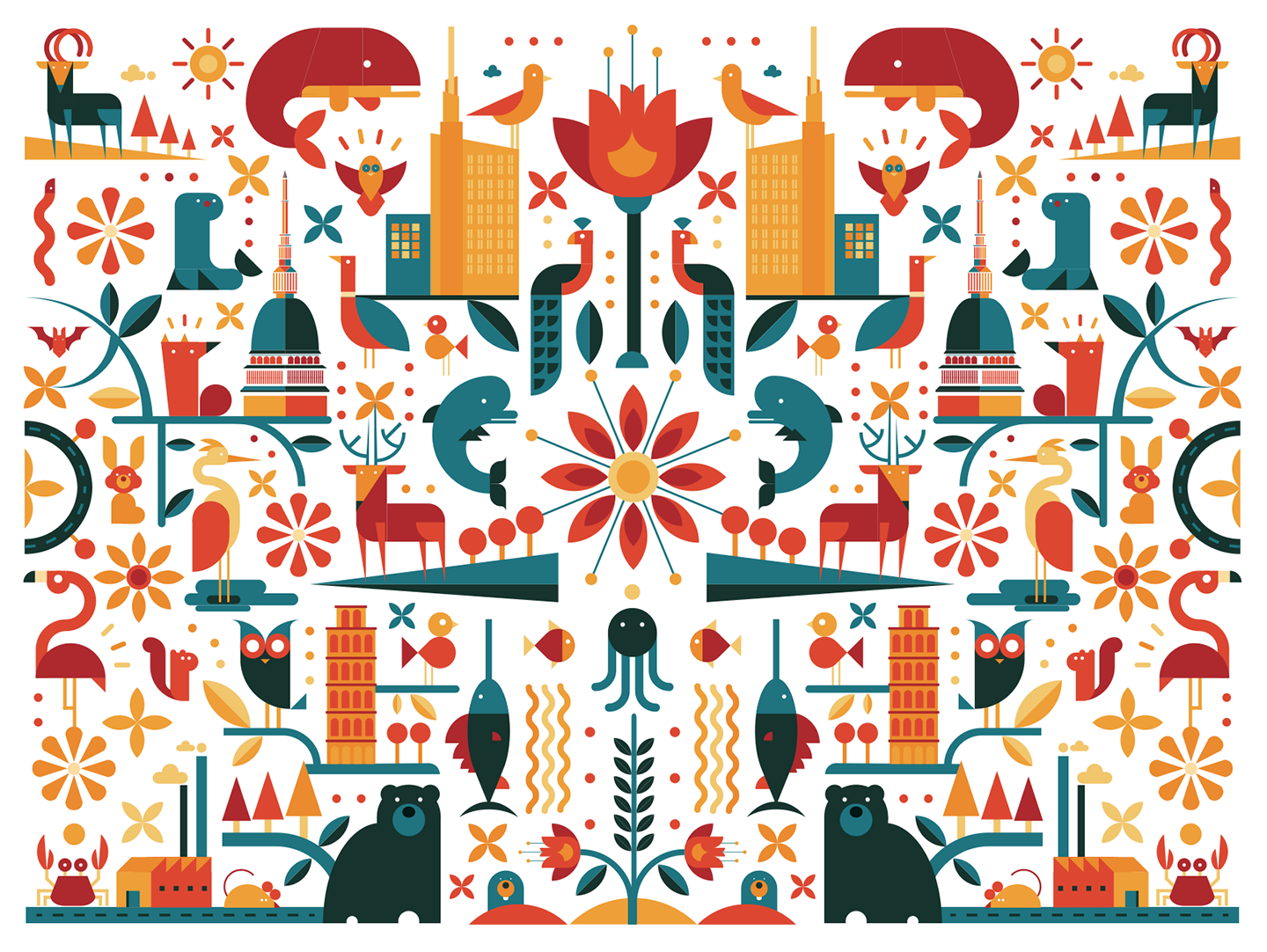 I was asked to work on a big mural inspired by italian landscapes, flora and fauna, Raffaello's work in Vatican and art by italian cartoonist Jacovitti.
